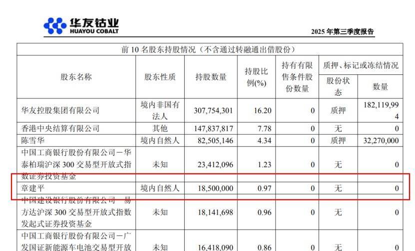 不过,近一年A股市场中,刘鑫并不是首位现身上市公司股东名单中的游资。2025年三季度以来,被称为“章盟主”的知名游资章建平进入华友钴业前十大流通股东,同时加仓寒武纪。
